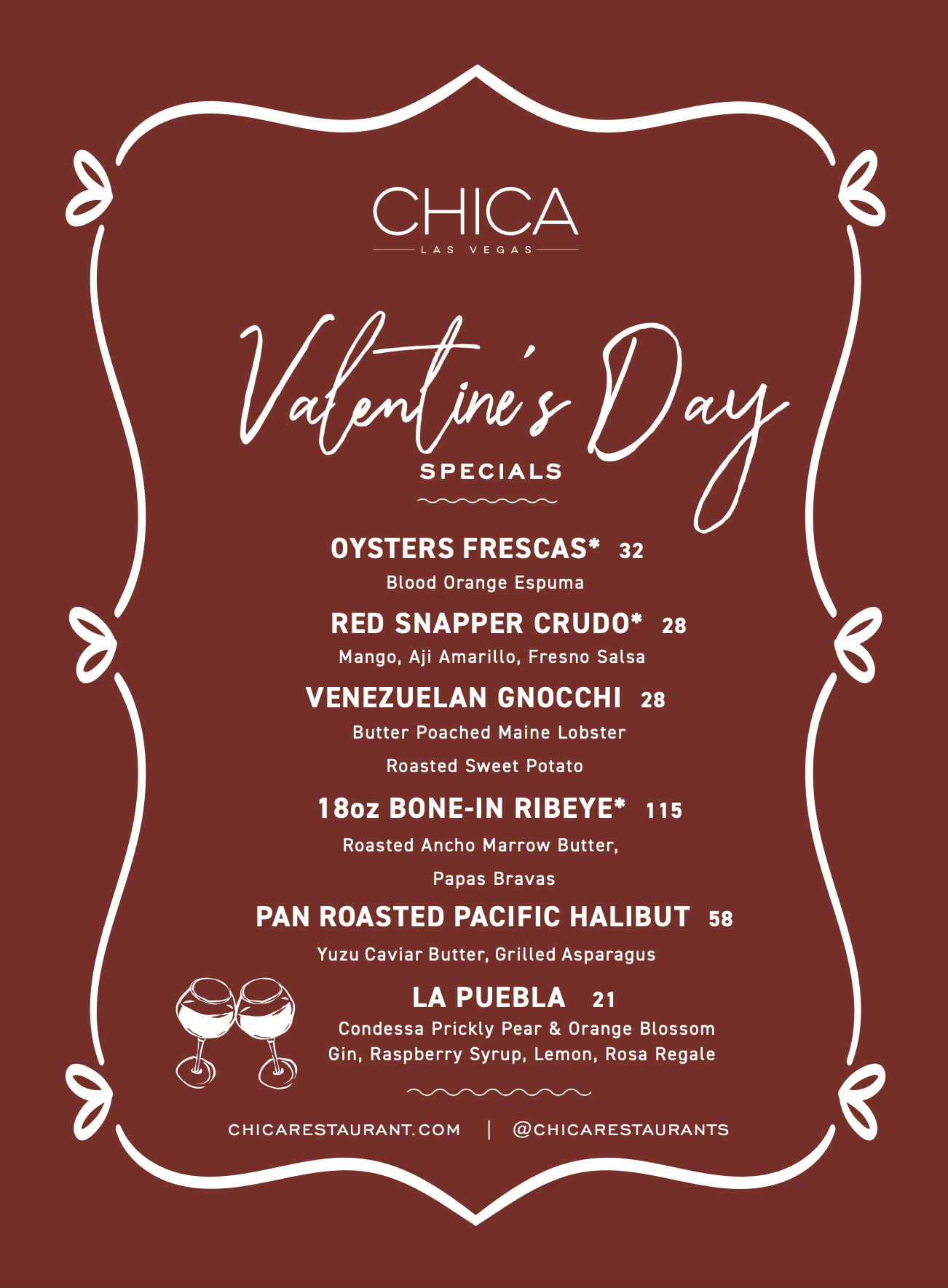 Valentines DayHoliday Specials Las Vegas Hours & Location Las Vegas Menus Chica Nights Vegas Book an EVENT CONTACT VEGAS TEAM Join our Team Happy Hour AboutJOIN THE LIST